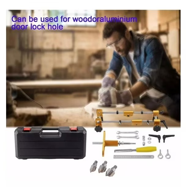 Kit Instalación De Cerradura Puerta Kit Instalación Cerradura de apertura de orificio Cerradura de embutidora Cerradura de instalación de carpintera para puertas de, puertaDescripción:Hecho de hoja de forja de aleación de acero de tungsteno de alta cad, y duradera.Apertura ordenada, suave, sin bordes, sin fenómeno de temblor, se astilla fácilmente.Resistencia a las pequeñas incisiones, característica de perforación estable, velocidad rápida, sin romper el borde.Fácil de instalar operar: la seguridad operativa, ranura pida, solo necesita usar una taladradora eléctrico para conectar al dispositivo y.APLICACIÓN: se puede utilizar para abrir un nuevo orificio de bloqueo, abrir un orificio de bloqueo excéntrico, cambiar el bloqueo de contraseña y cambiar el bloqueo de huellas dactilares.Especificación: Material: de tungstenoTamaño hoja: 18/22/24 mmDiámetro de: 10 mmProfundidad de la ranura: 13 cmLongitud má de la ranura: 28 cmEspesor de la puerta: 3,5-10 cmCarta del:Ángulo de sujeción normal: 24×45 mmón de actualización Á sujeción: 34×45 mmEl paquete incluye:apertura de orificio para cerradura de puerta de 1 piezaRegla de 1 piezaPúa de carpintero de 1 pieza2 piezas de anillos de manoCabezal de corte de aleación de tungsteno de 3 piezas